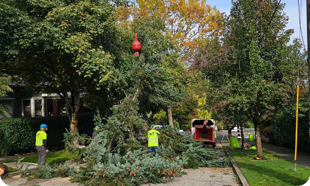 Safe felling and complete stump grinding for hazardous trees, storm damage, and development clearing. Our arborists assess every tree for safe removal, including technical work near structures common in Portland’s urban neighborhoods.